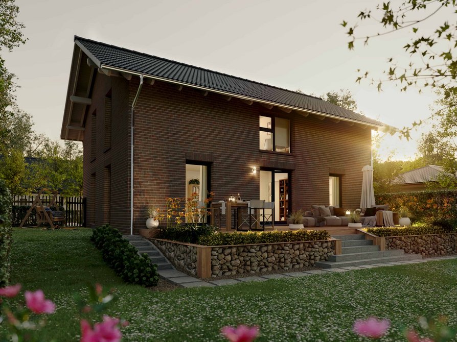 Das Landhaus 142 Modern in der Variante Klinker vereint die charmante Form des Landhauses mit einer hochwertigen Klinkerfassade. Die robuste Bauweise sorgt für eine langlebige und wertige Außenwirkung und verleiht dem Haus einen besonders charaktervollen Stil.