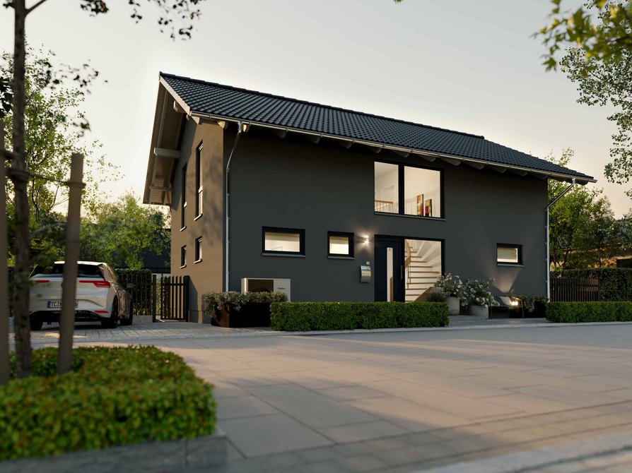 Das Landhaus 142 Modern in der Variante Elegance verbindet klassische Landhausarchitektur mit moderner Großzügigkeit. Große Fensterflächen lassen viel Tageslicht ins Haus und schaffen eine helle Wohnatmosphäre. Der weitläufige Wohn und Essbereich bildet das Herz des Hauses und bietet viel Platz für gemeinsame Zeit mit Familie und Gästen.